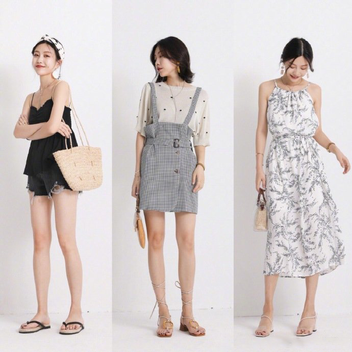 ▲三组搭配都运用到了V领、露纤细四肢、高腰的穿衣方式来显瘦显高。
